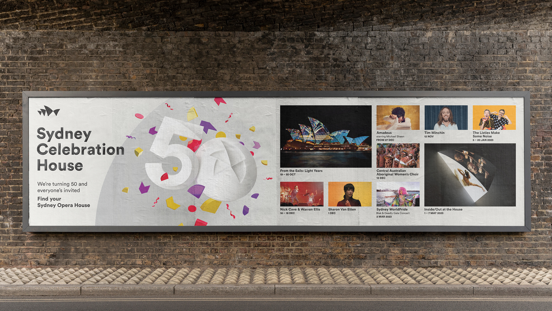 In October 2023, Sydney Opera House turned 50. To mark this milestone, SOH decided to throw a year long celebration of special events and one off experiences. Taking inspiration from the Utzon’s spherical solution, we created a commemorative ‘50’ designed for use throughout the 16 month long campaign.
